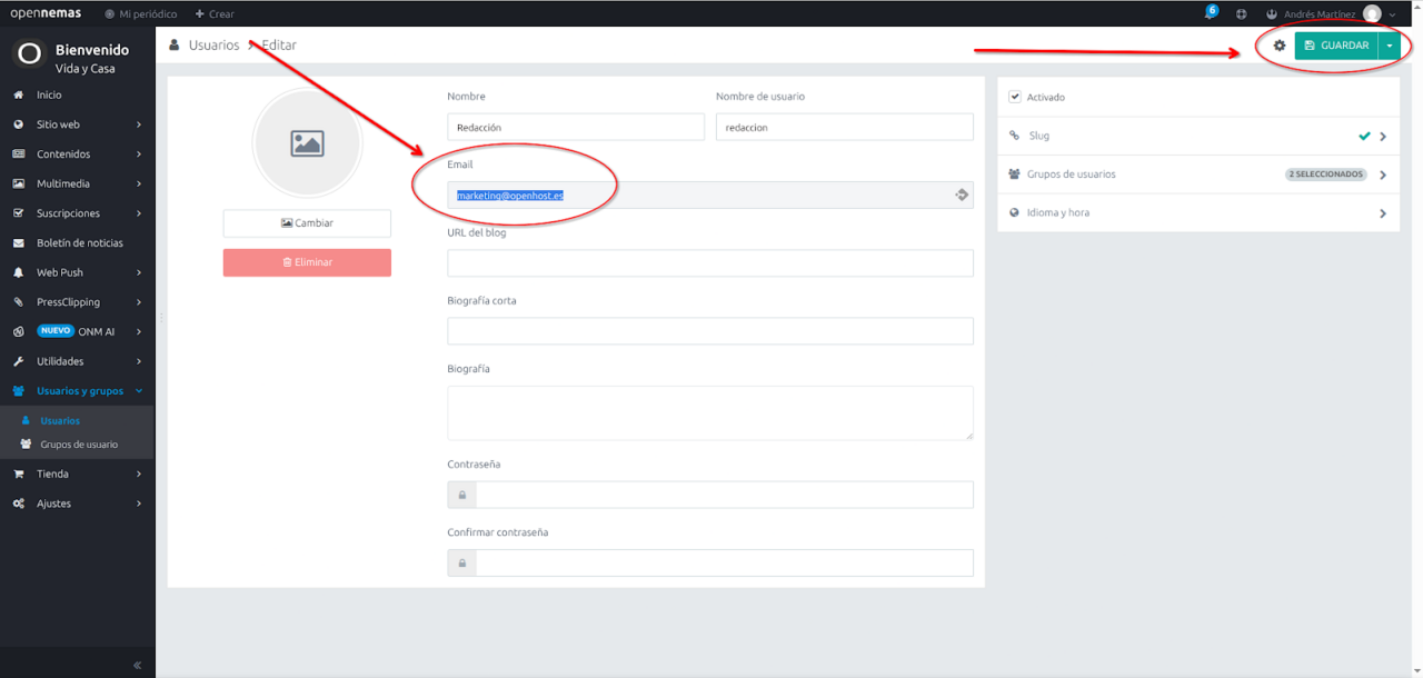 - ¿Cómo actualizar tu correo en el CMS Opennemas?